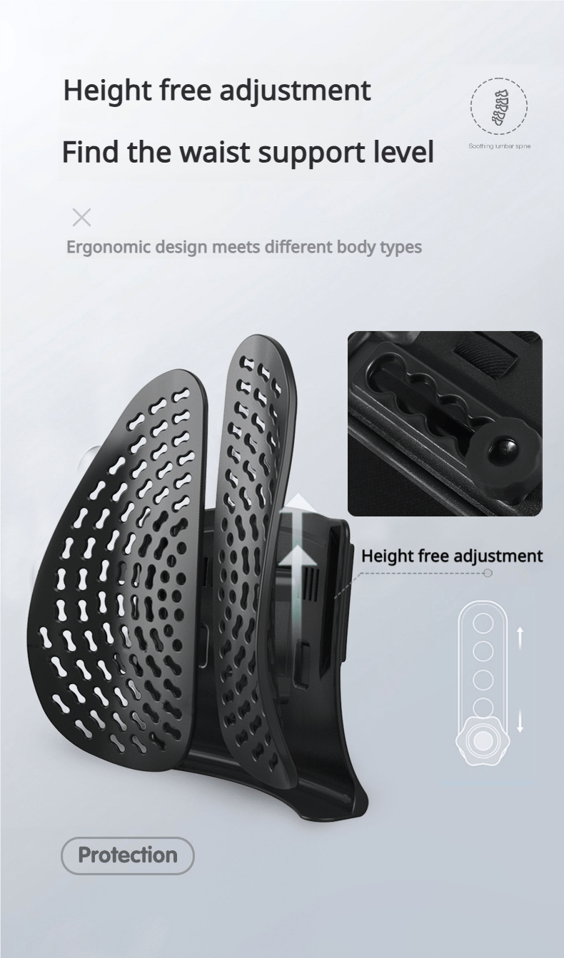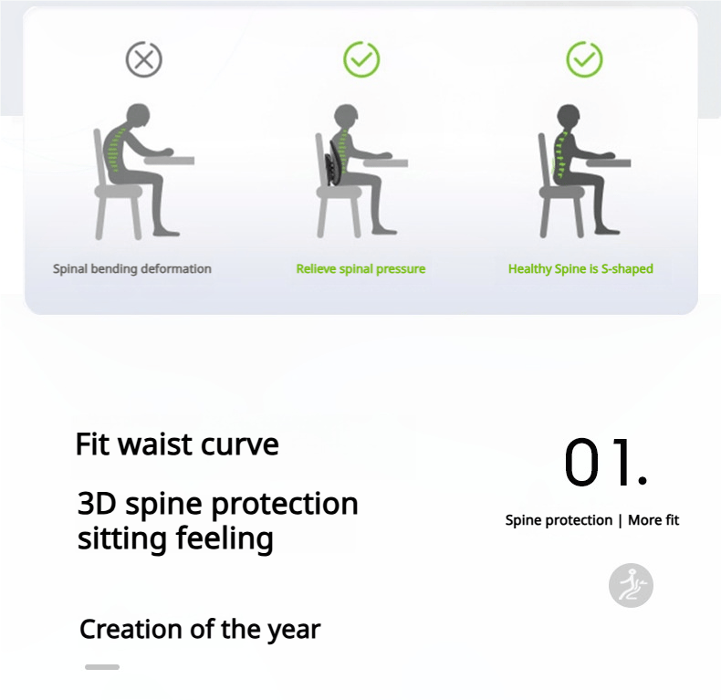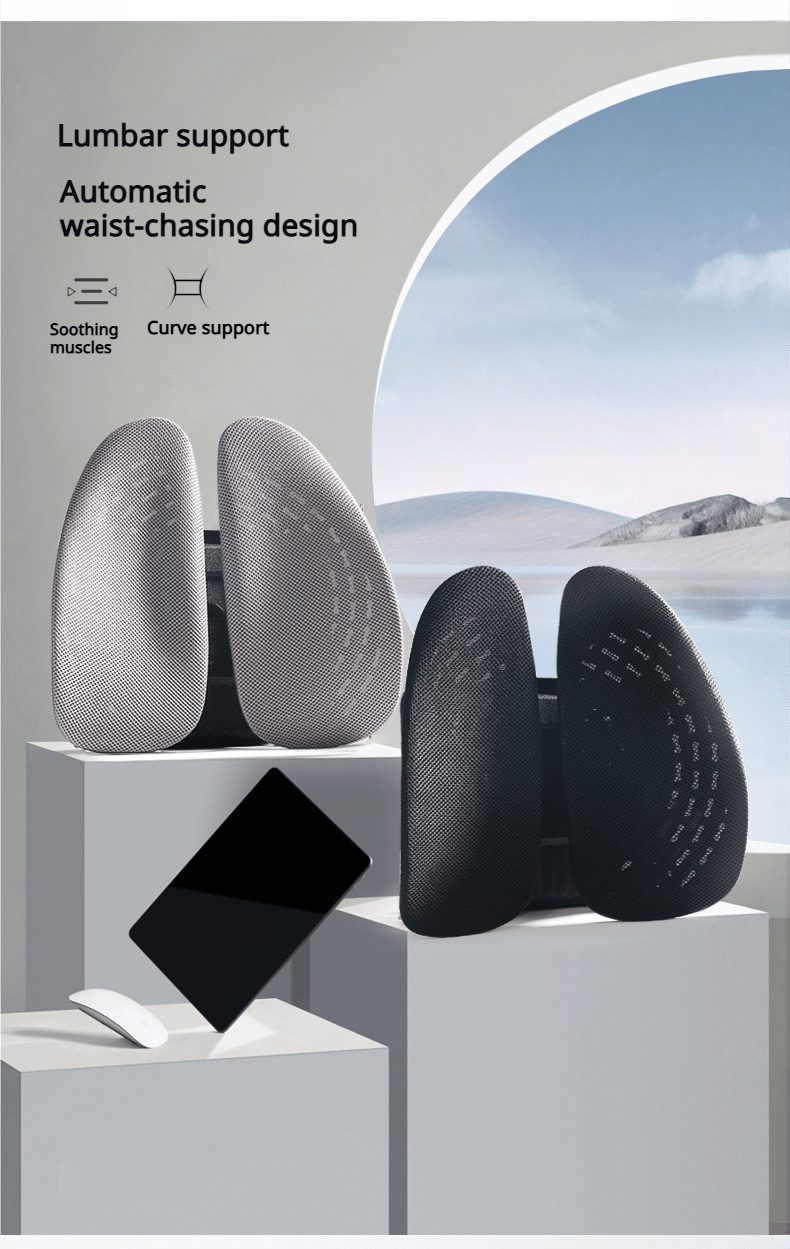 Inspired by the human spine, the dual-panel structure offers targeted pressure relief and balanced support for long hours of sitting.